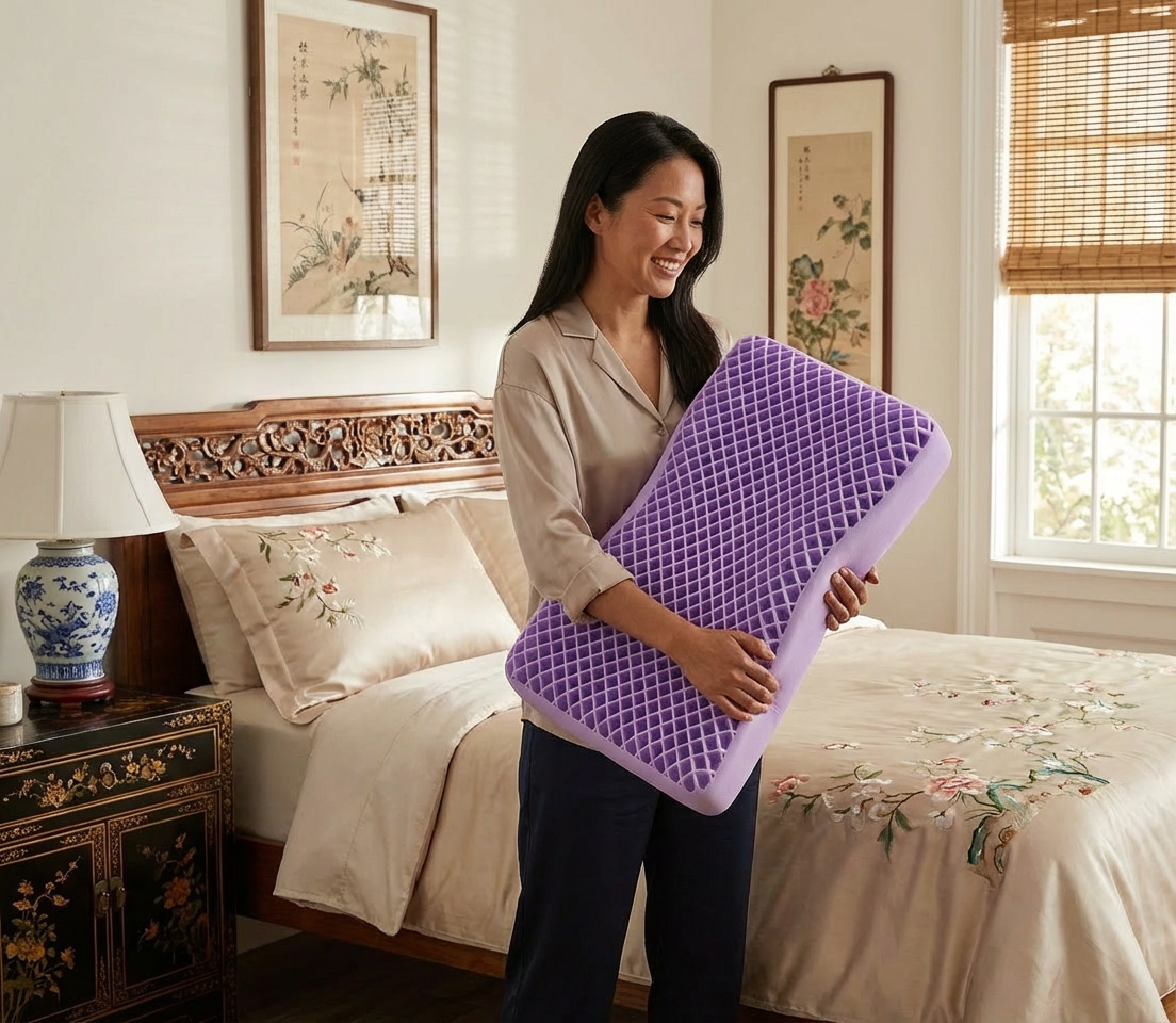 Absolutely. Unlike traditional foam that traps body heat, the unique 360-degree triangular grid structure facilitates constant air circulation. This breathable design naturally whisks away warmth, ensuring a consistently cool surface all night long, so you can finally stop hunting for the cool side of the pillow.